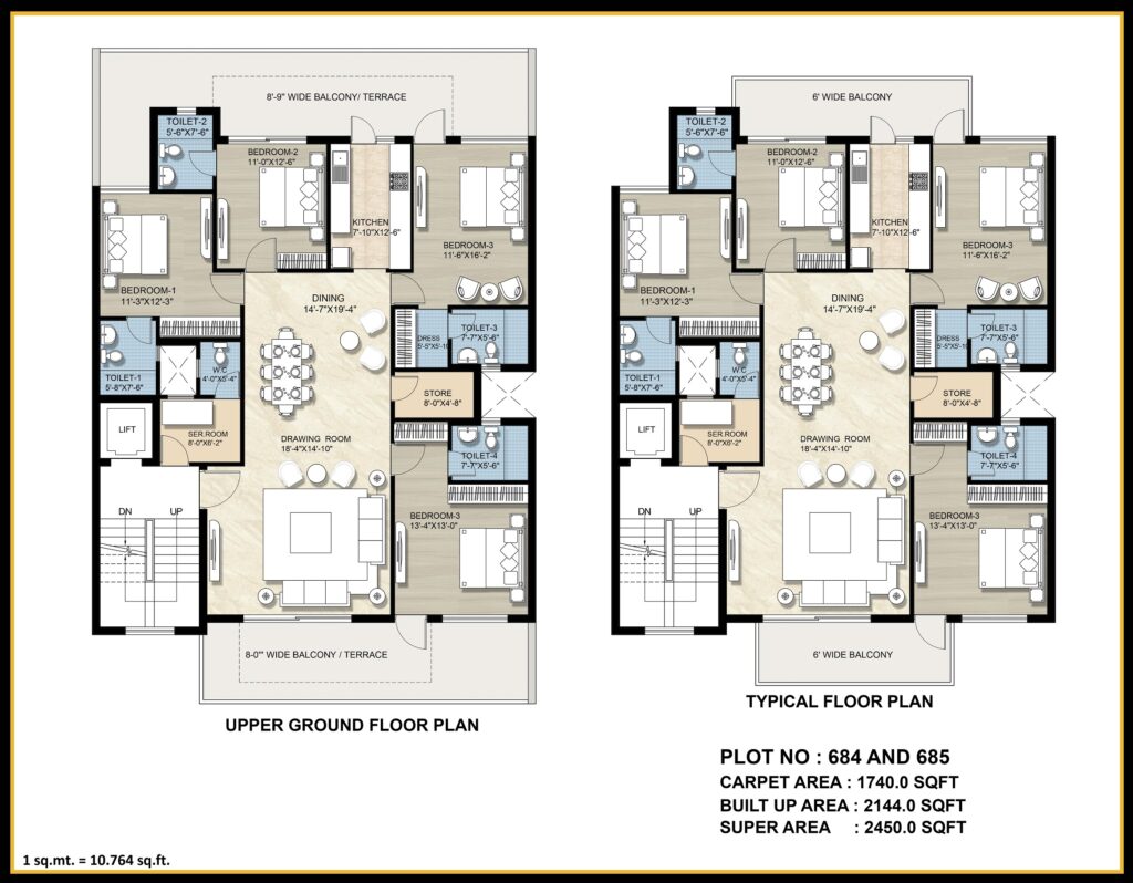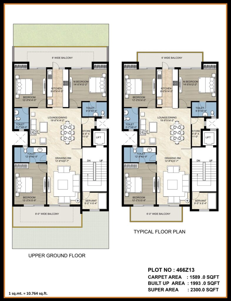 Project Type: Independent luxurious Floors 3/4bhk and 3/4 bhk with servant room